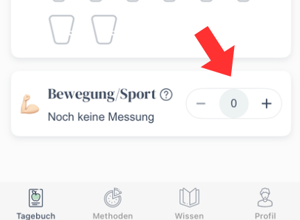 - Scrolle im Tagebuch nach ganz unten, bis du die Anzeige „Bewegung“ liest