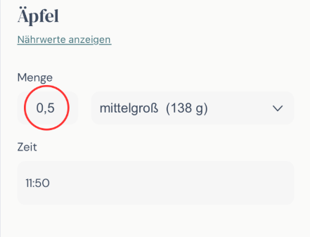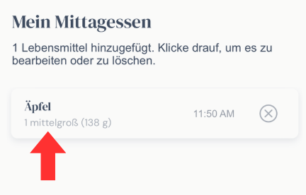 2. Klicke in der Mahlzeit auf dein Lebensmittel, dessen Anzahl/Portionsgröße/Menge du anpassen willst.