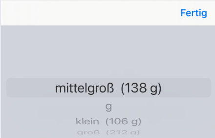 Scrolle dafür nach unten, bis die Gewünschte Maßeinheit markiert ist. Zum bestätigen klicke auf Fertig.